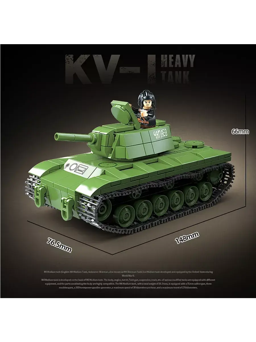Конструктор «Тяжёлый танк КВ-1, 461 деталь» — это увлекательный набор для детей и взрослых, позволяющий собрать реалистичную модель легендарного советского тяжёлого танка периода Великой Отечественной войны. В комплект входят 461 прочная и безопасная деталь, которые легко соединяются между собой, образуя устойчивую и детализированную конструкцию. Готовая модель отличается узнаваемым силуэтом, массивной башней, гусеничным ходом и характерными элементами бронетехники того времени. Сборка конструктора развивает внимание, усидчивость, мелкую моторику, инженерные навыки и пространственное мышление, превращая процесс в полезное и интересное занятие. Конструктор подойдёт как начинающим, так и тем, кто уже имеет опыт в сборке моделей, а готовая конструкция станет отличным дополнением к коллекции военной техники. С помощью танка КВ-1 можно разыгрывать исторические сцены, придумывать собственные игровые сценарии и использовать модель для демонстрации. Набор рассчитан на совместный досуг детей и взрослых, помогая объединить поколения и весело провести время в процессе сборки. «Тяжёлый танк КВ-1, 461 деталь» станет достойным подарком для коллекционеров, любителей истории, поклонников советской военной техники и ценителей масштабных моделей. Этот конструктор объединяет в себе игру, обучение и творчество, развивает фантазию и интерес к инженерии, а также позволяет прикоснуться к истории и воссоздать атмосферу эпохи прямо у себя дома.