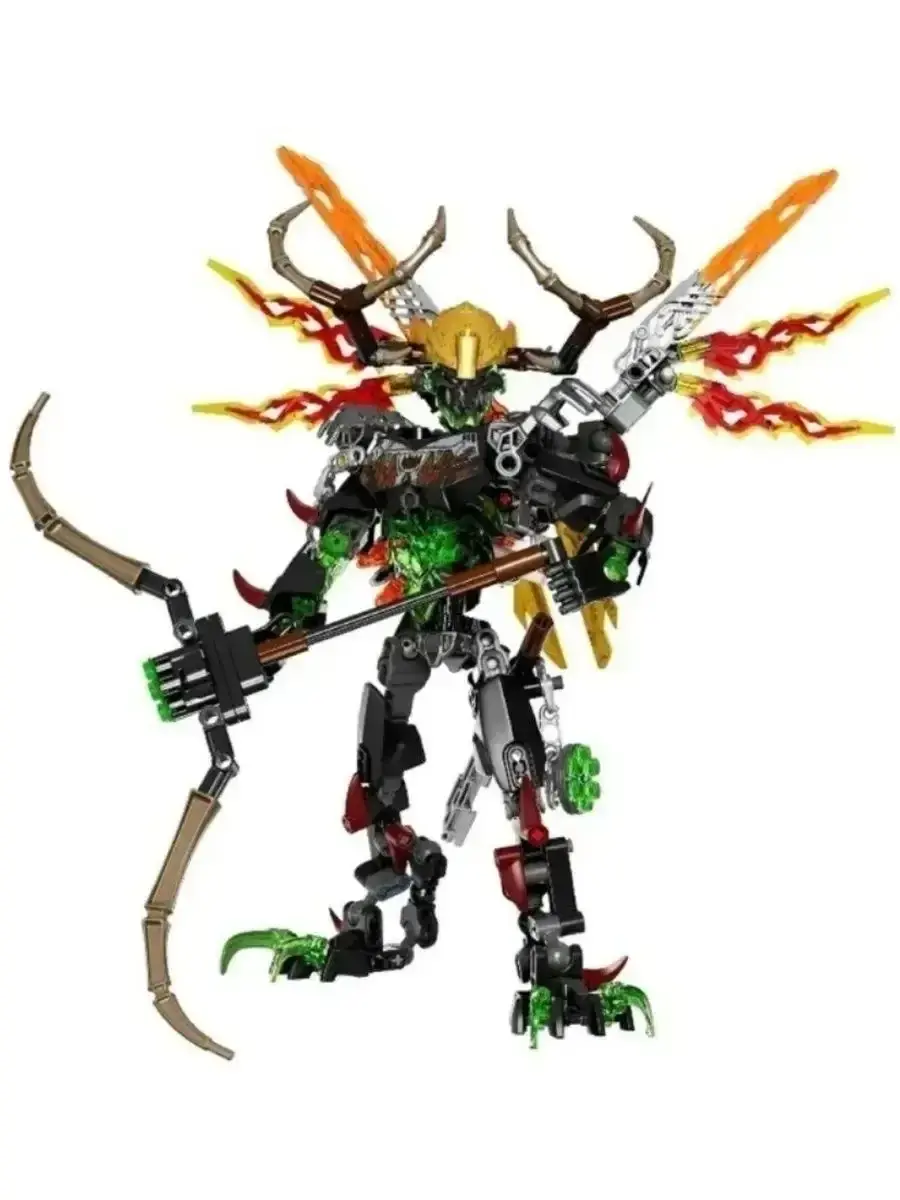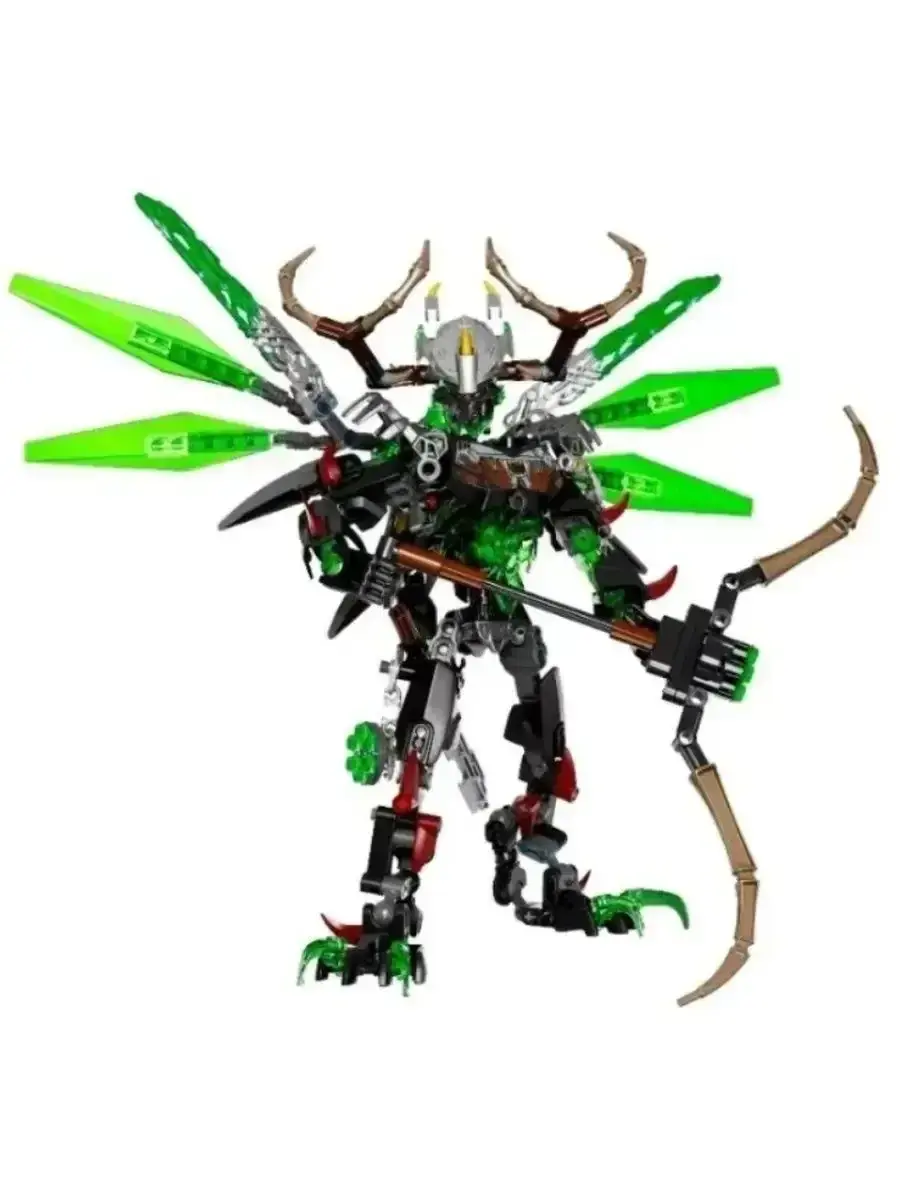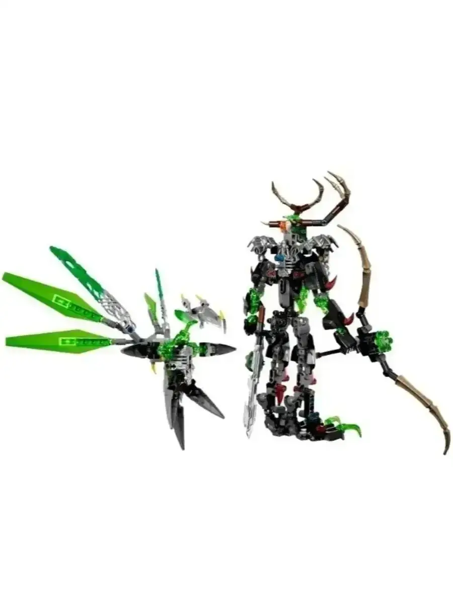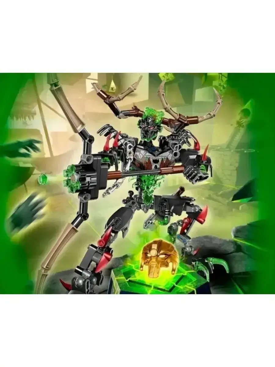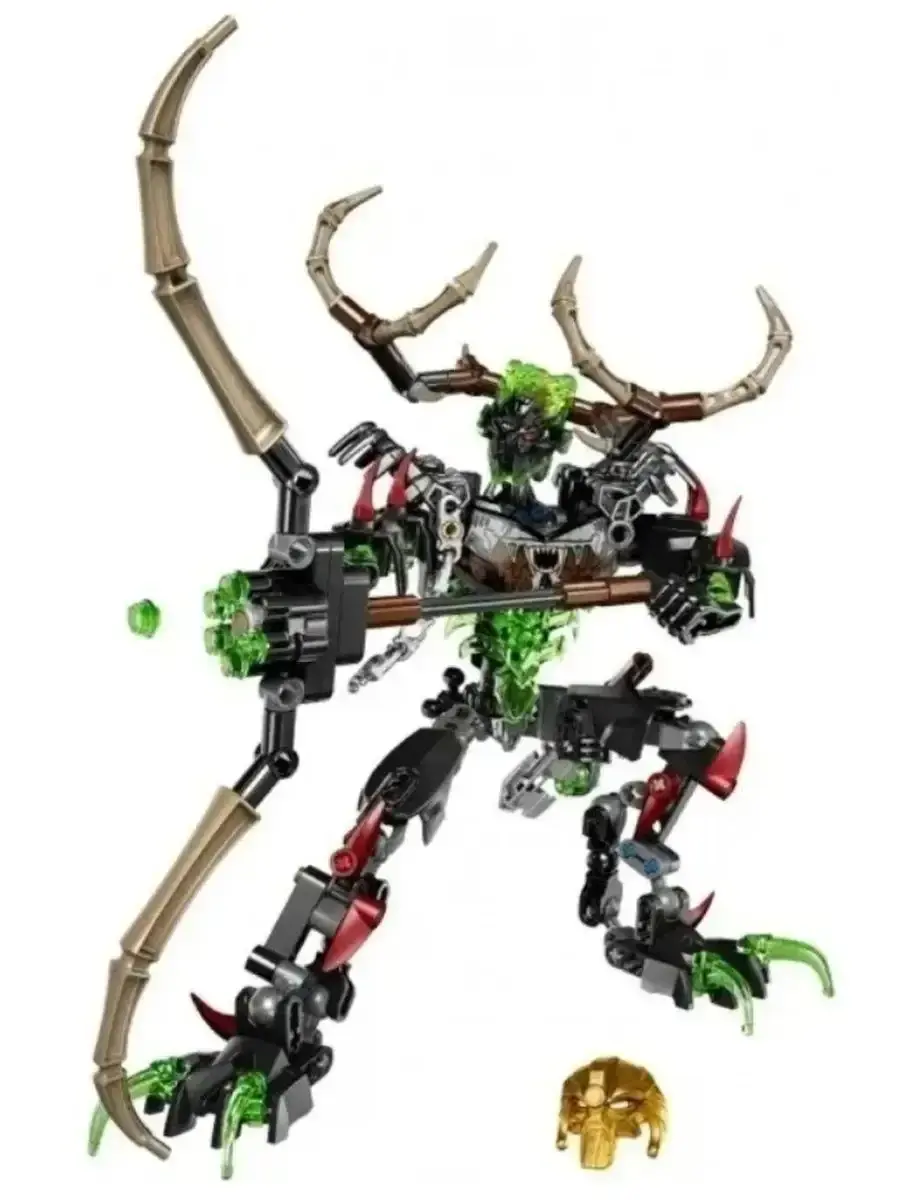Порождение сил Зла - Охотник Умарак - преисполнен ненависти к тотемным животным и Объединителям стихий. Именно они стоят на страже, мешая ему завладеть стратегически важными землями, ресурсами и, конечно же, золотыми священными масками Силы! Черно-коричневый монстр с рогатым черепом внушает невольный страх даже на расстоянии, а уж вблизи он, вместе со своим шестиствольным пулеметом, кажется совсем непобедимым! Благодаря прозрачно-зеленым крыльям Уксара, с которым может сливаться в единый организм, Умарак может летать, внезапно появляясь в самых неожиданных местах. Но удастся ли ему сначала захватить чужие маски силы, а потом уж - оборонить свою?