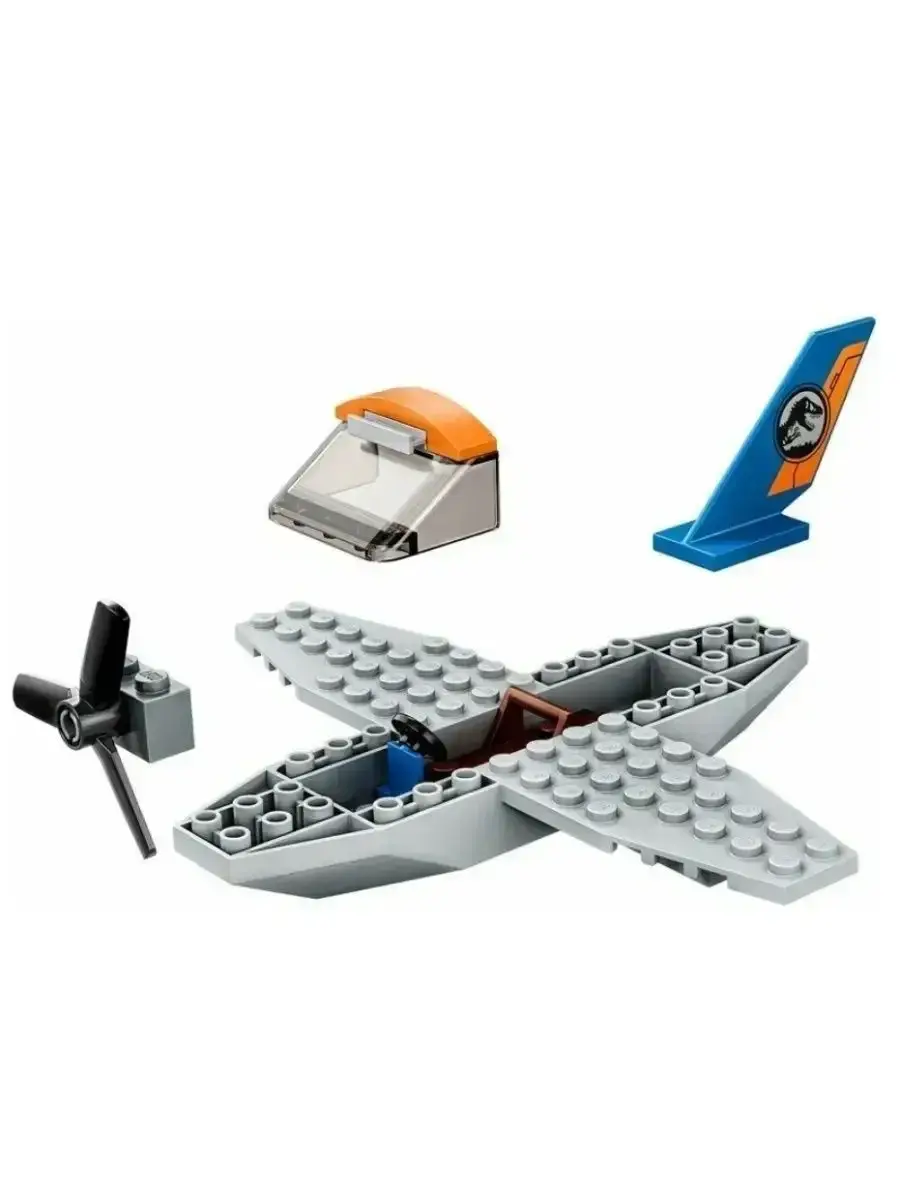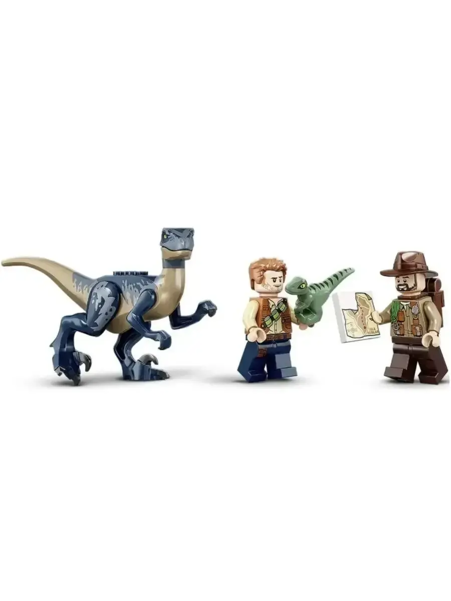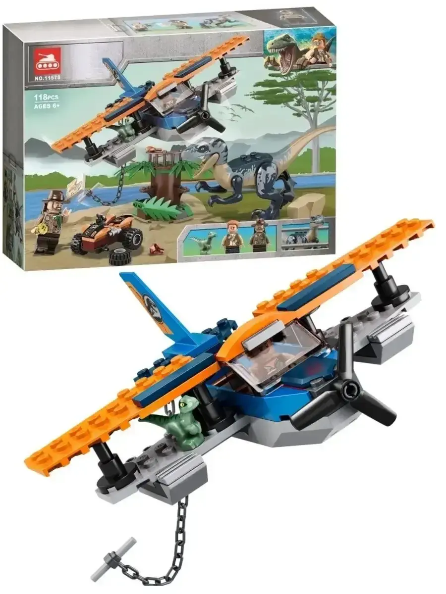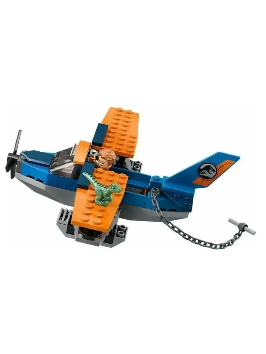 Играя с набором Велоцираптор: спасательная операция на биплане, маленький искатель приключений сможет представить себя в роли Оуэна Грэди, летящего на помощь Синджину Прескотту. Этот простой в сборке игрушечный биплан оснащен кабиной для мини фигурки и цепью для спасения Синджина. Этот набор также включает в себя подвижные фигурки велоцираптора и детеныша динозавра Дельты, наблюдательный пост на вершине дерева с гнездом динозавра, внедорожник, а также забавные аксессуары. В набор также входят подвижная фигурка велоцираптора, наблюдательный пост на вершине дерева, гнездо динозавра для детеныша велоцираптора Дельты, а также множество аксессуаров, таких как карта сокровищ, яйцо динозавра и два бриллианта для творческих игр. Размеры модели биплана — чуть более 6 см в высоту, 18 см в длину и 16 см в ширину.