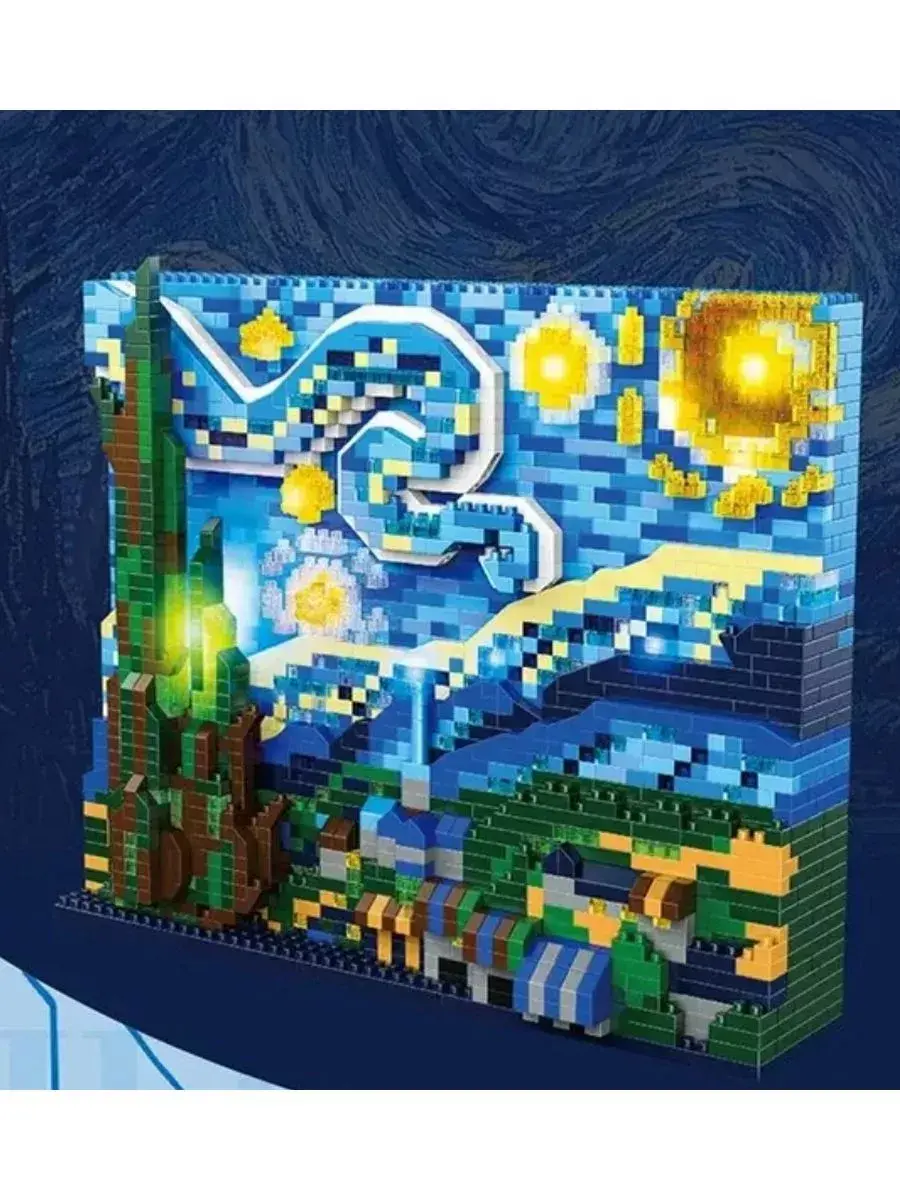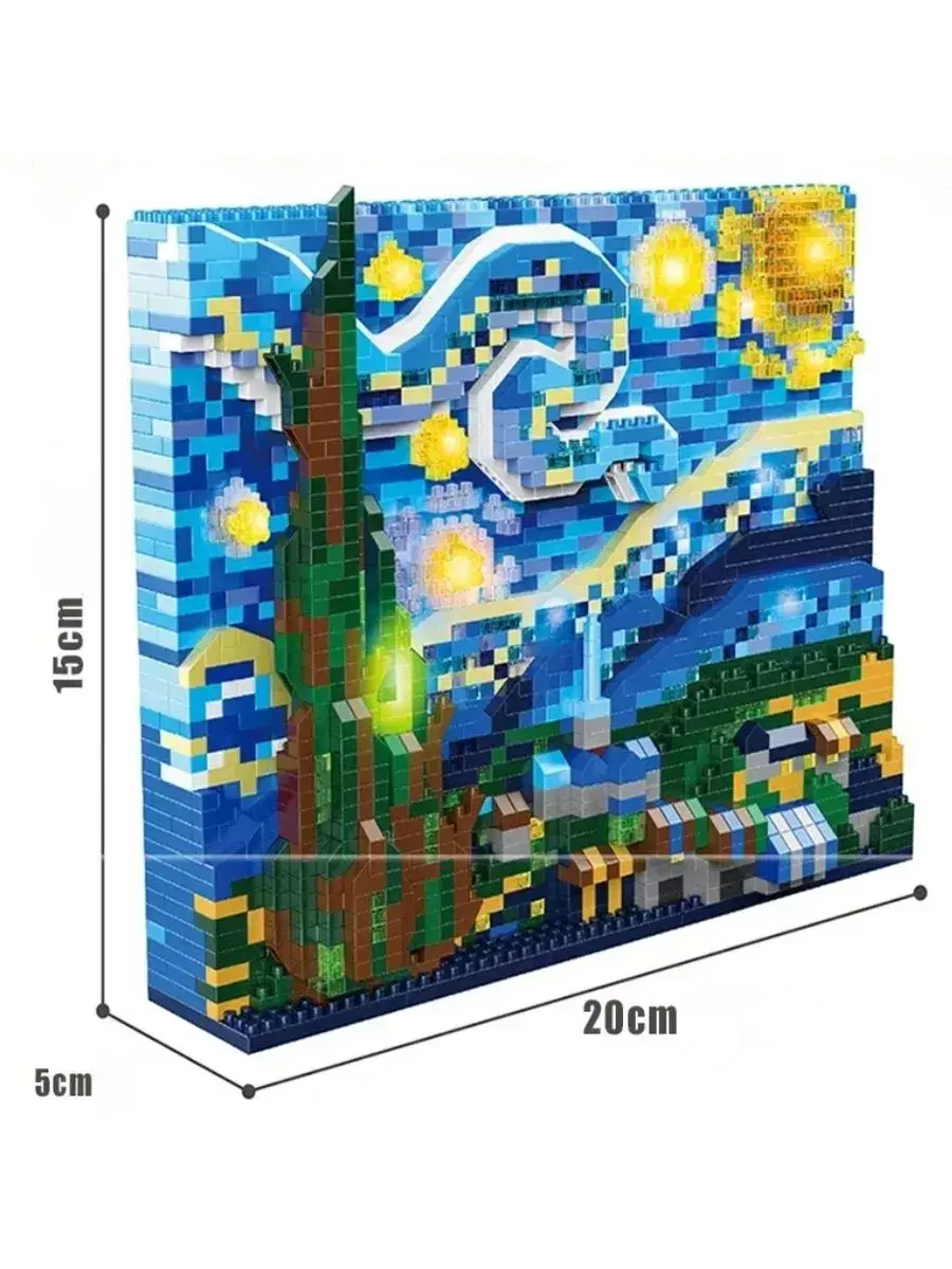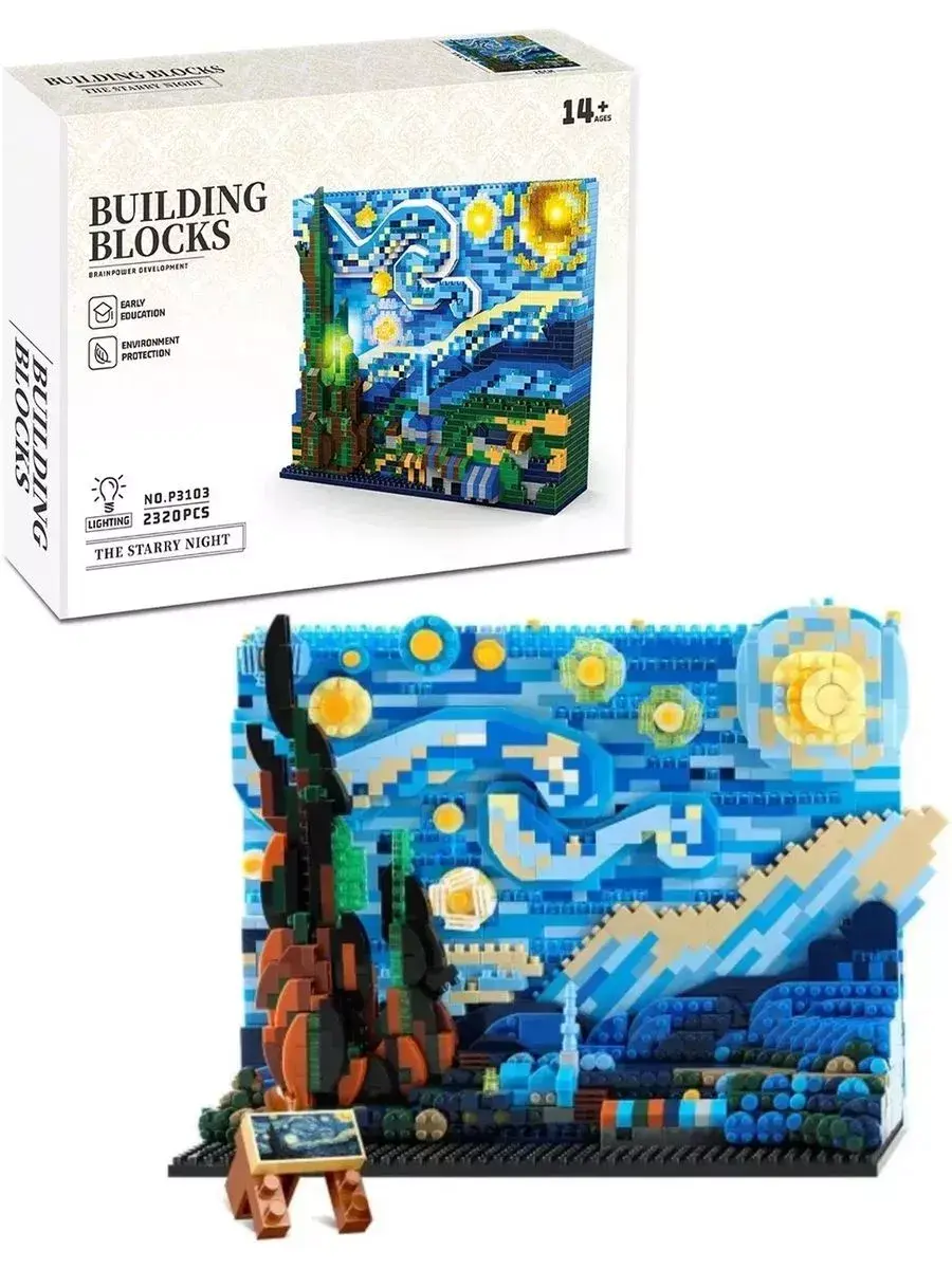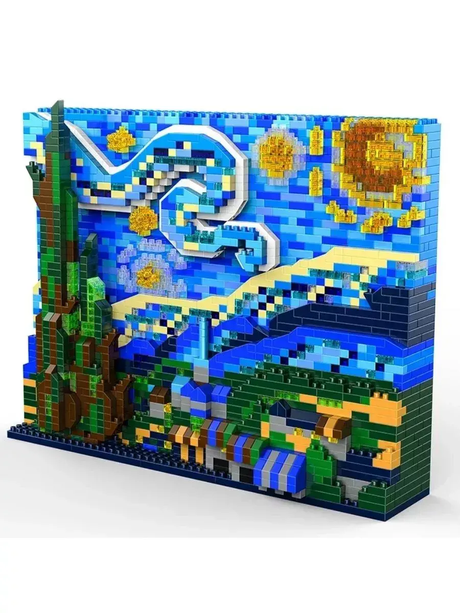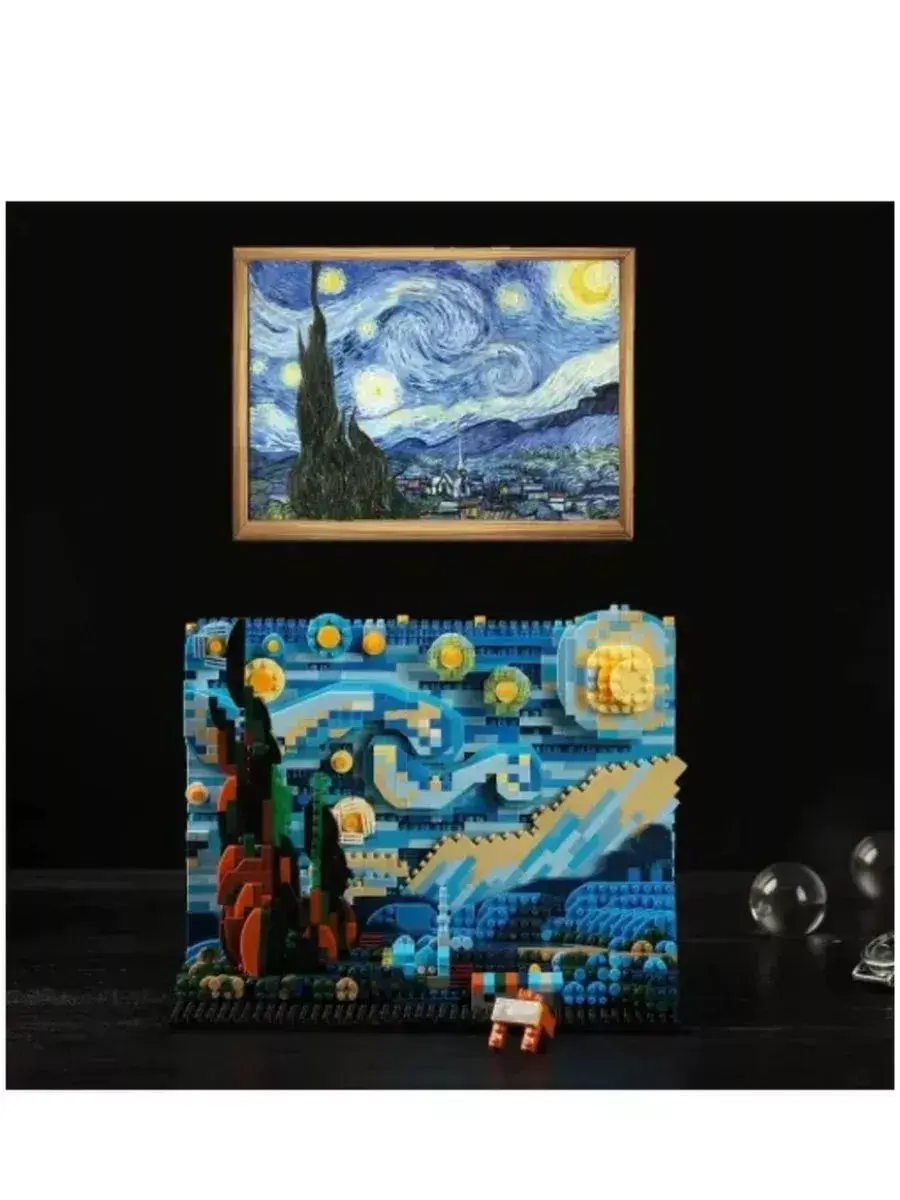 Собери свою собственную трехмерную версию одной из самых знаменитых работ Винсента Ван Гога Звездная ночь, которую можно увидеть в Музее современного искусства (MoMA) в Нью-Йорке. Откройте для себя инновационные методы строительства, чтобы запечатлеть закрученные мазки кисти Ван Гога, и повесьте готовый шедевр на крючок на стене или повесьте его отдельно. Эта великолепно детализированная модель поставляется с регулируемым кронштейном дисплея, на котором может стоять минифигурка Винсента Ван Гога с кистью, палитрой и мольбертом.