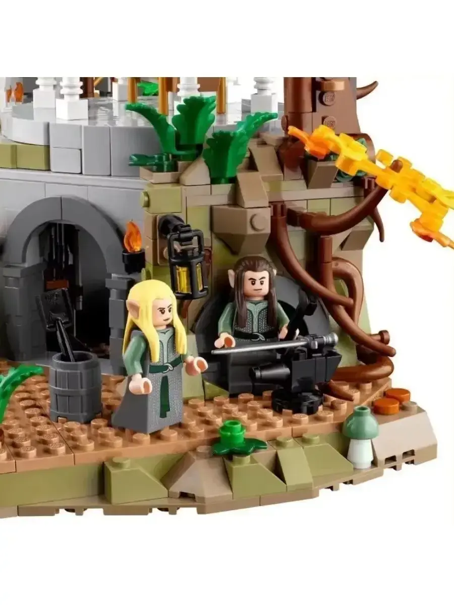Детальное оформление - Детали включают спальню Фродо и кабинет Элронда, а разные секции можно выставлять отдельно: например, Совет Элронда можно снять с основной модели. Знаковые персонажи - В набор входят 15 минифигурок, в том числе легендарные персонажи, такие как Фродо, Сэм, Бильбо Бэггинс, Боромир, Гимли, Арагорн, Леголас и Гэндальф Серый. Воссоздайте свои любимые сцены - Набор позволяет легко воссоздать знаковые моменты, включая сцену Совета Элронда и момент, когда Братство пересекает мост в начале своего путешествия. Набор имеет высоту более 39 см, ширину 75 см и глубину 50 см.