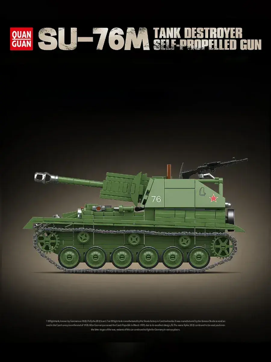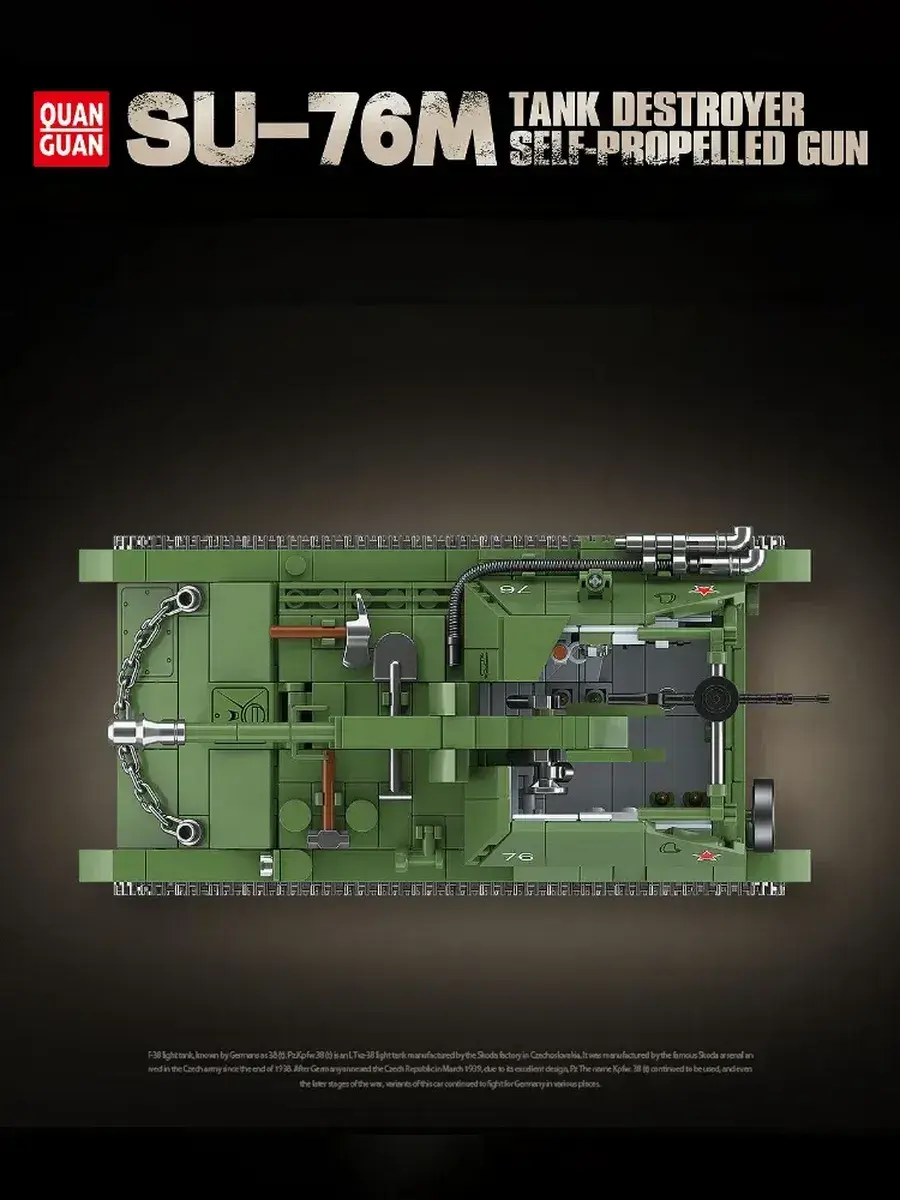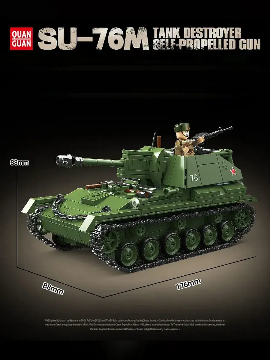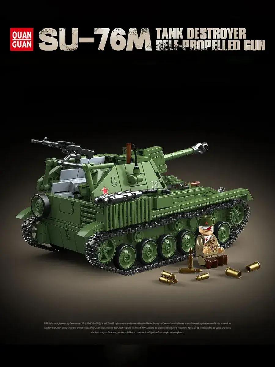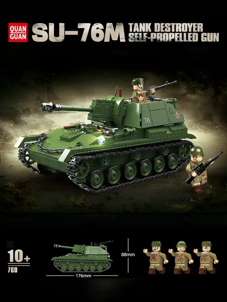 Конструктор «Военный танк SU-76M» — это детализированный набор, позволяющий собрать реалистичную модель одной из самых массовых и известных самоходных артиллерийских установок периода Второй мировой войны. В комплект входят прочные и безопасные детали, которые легко соединяются между собой и образуют устойчивую конструкцию с характерным открытым боевым отделением и узнаваемым силуэтом установки SU-76M. Готовая модель выполнена с высокой степенью детализации, имеет подвижные элементы и позволяет воссоздать внешний вид реальной боевой техники. Сборка конструктора развивает внимание, усидчивость, мелкую моторику, пространственное мышление и инженерные навыки, превращая процесс в увлекательное и полезное занятие для детей и взрослых. Модель отлично подходит для разыгрывания исторических сражений, создания тематических композиций или дополнения коллекции военной техники. Набор можно использовать как для игры, так и в качестве демонстрационной модели или элемента коллекции. Конструктор «Военный танк SU-76M» подойдёт для совместного досуга, объединяя поколения и создавая атмосферу увлекательного творчества. Такой набор станет отличным подарком для коллекционеров, любителей истории, поклонников военной техники и тех, кто ценит качественные и масштабные модели. Этот конструктор объединяет в себе игру, обучение и творчество, помогает развивать воображение и интерес к инженерии, а также позволяет прикоснуться к истории и почувствовать атмосферу военной техники прямо у себя дома.