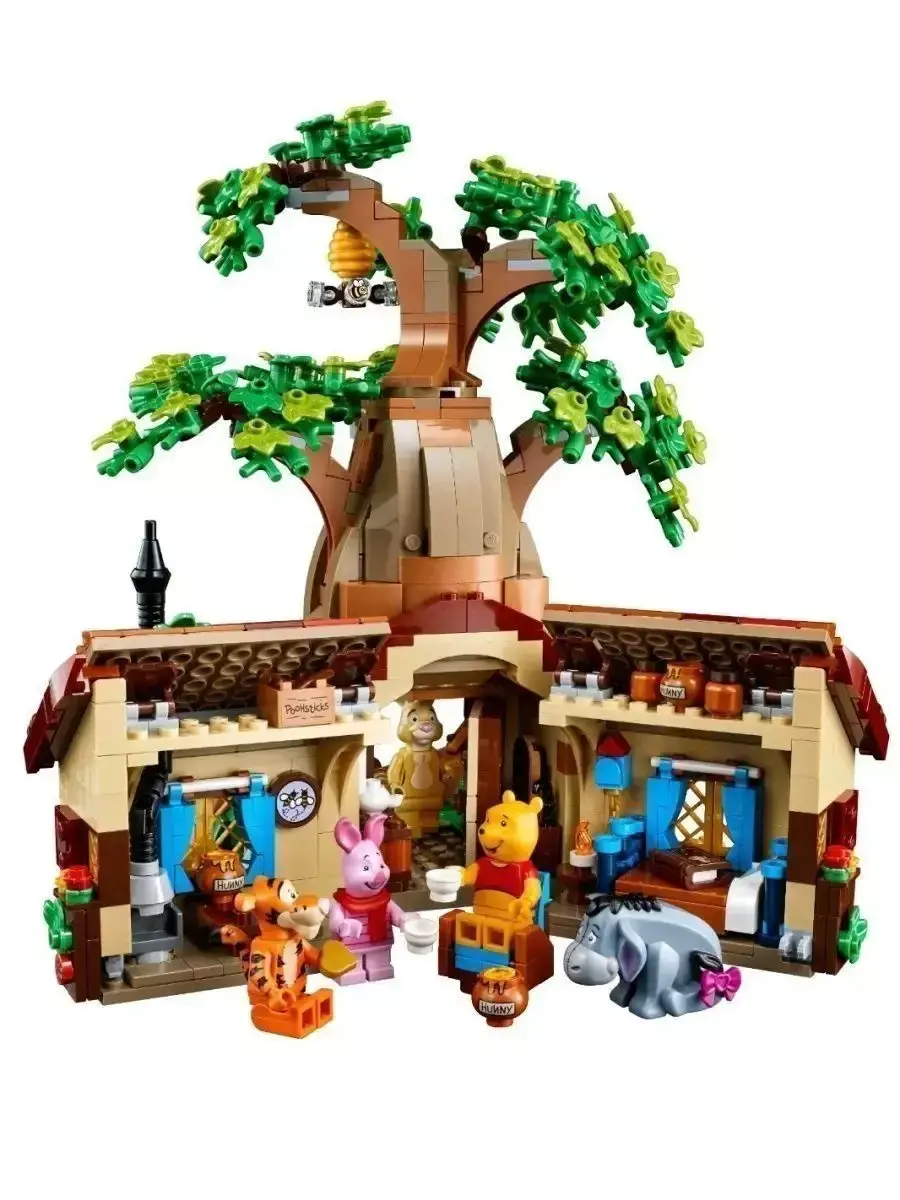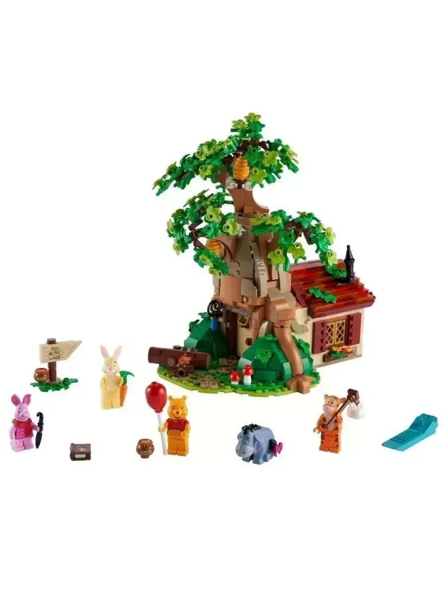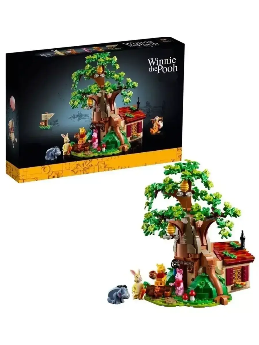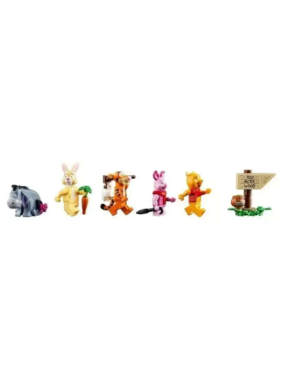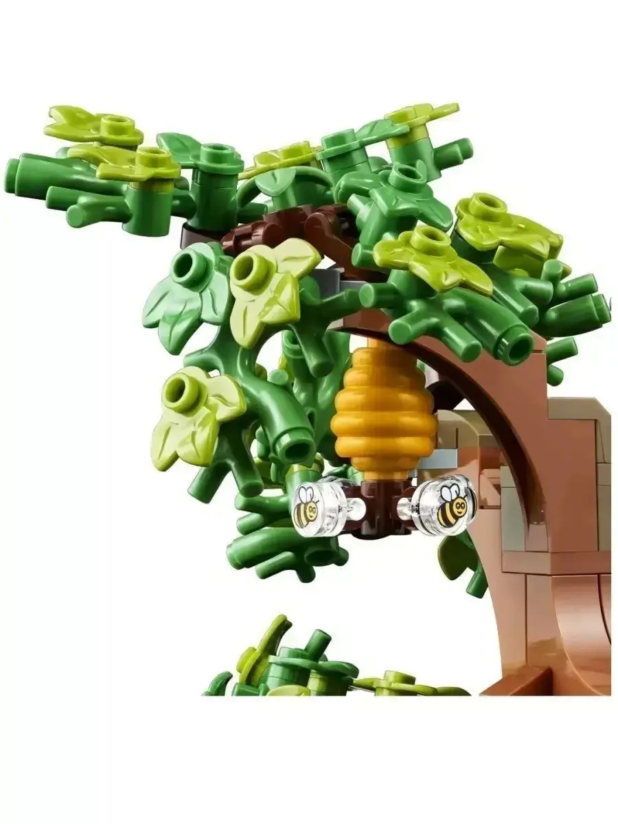 Собери настоящий домик Винни Пуха в новом конструкторе по мотивам похождения знаменитого медвежонка. В этом наборе Вас ждет чудесная модель из кубиков: домик Винни Пуха под большим дубом в Зачарованном лесу. Модель можно собирать в одиночку или с семьей, и дом открывается сзади для легкого доступа к знакомым деталям: тут есть кресло Винни Пуха для сборки, часы с медвежонком, палочки-пустяки, элементы в виде горшков с медом и многое другое. Отправляйтесь в Зачарованный лес и загляните в гости к Винни Пуху в его дом под большим дубом. Повстречайте Винни Пуха, который присел поразмыслить на бревно у костра. Познакомьтесь с Пятачком, Тигрой, Кроликом и осликом Иа-Иа и помогите Винни Пуху "взлететь" на вершину дерева, чтобы собрать мед из ульев. Загляните в дом, где вы найдете множество знакомых предметов, в том числе коробочку для игры в пустяки, часы с медвежонком и многое другое!