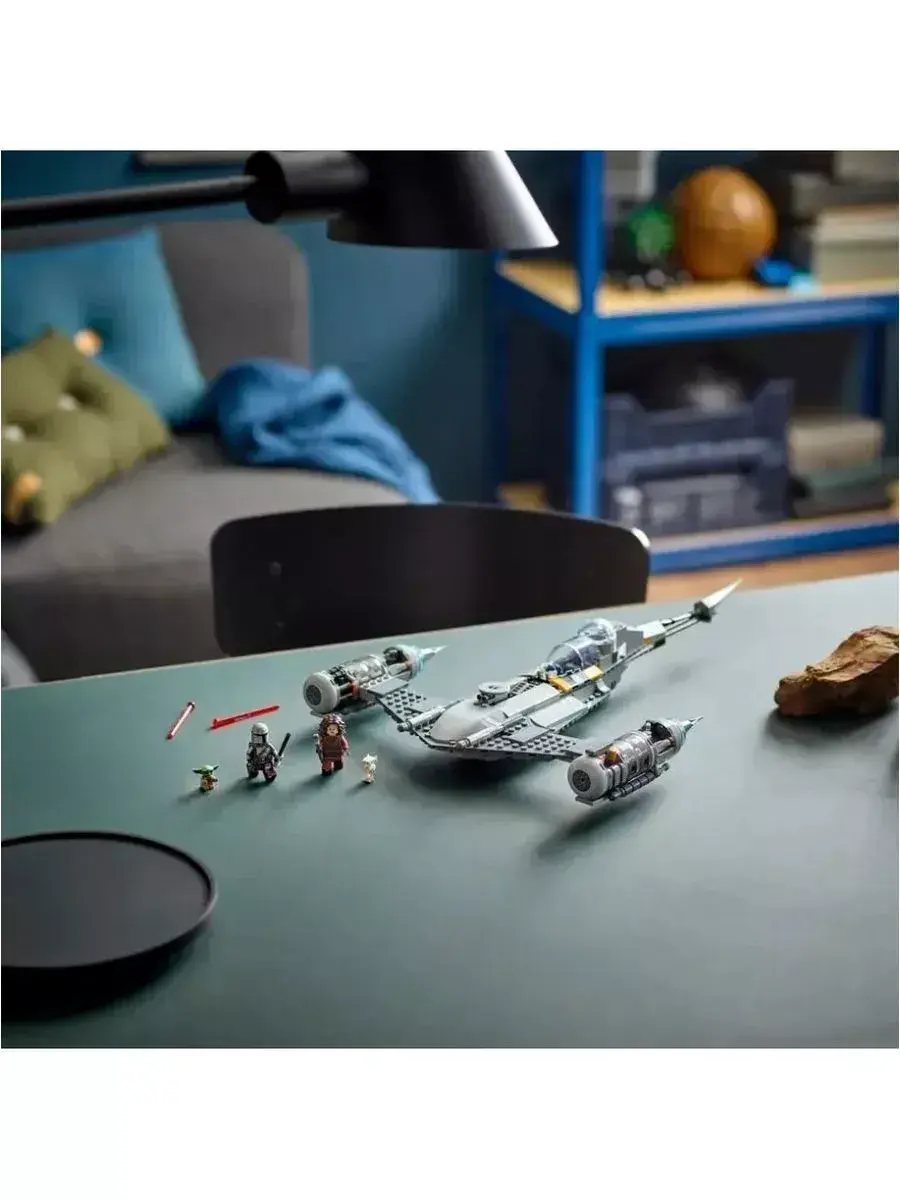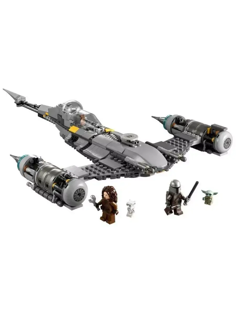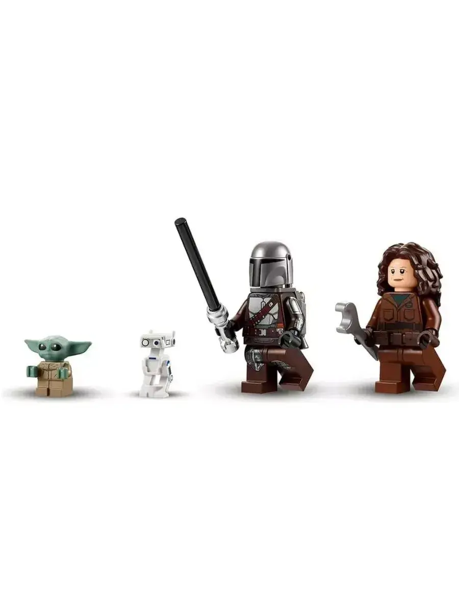 В комплекте также есть мини-фигурка Мандалорца с оружием, которая станет главным героем космических битв и приключений. Ребёнок сможет разыгрывать множество сюжетов — от обороны галактики до исследования новых планет и борьбы с врагами.