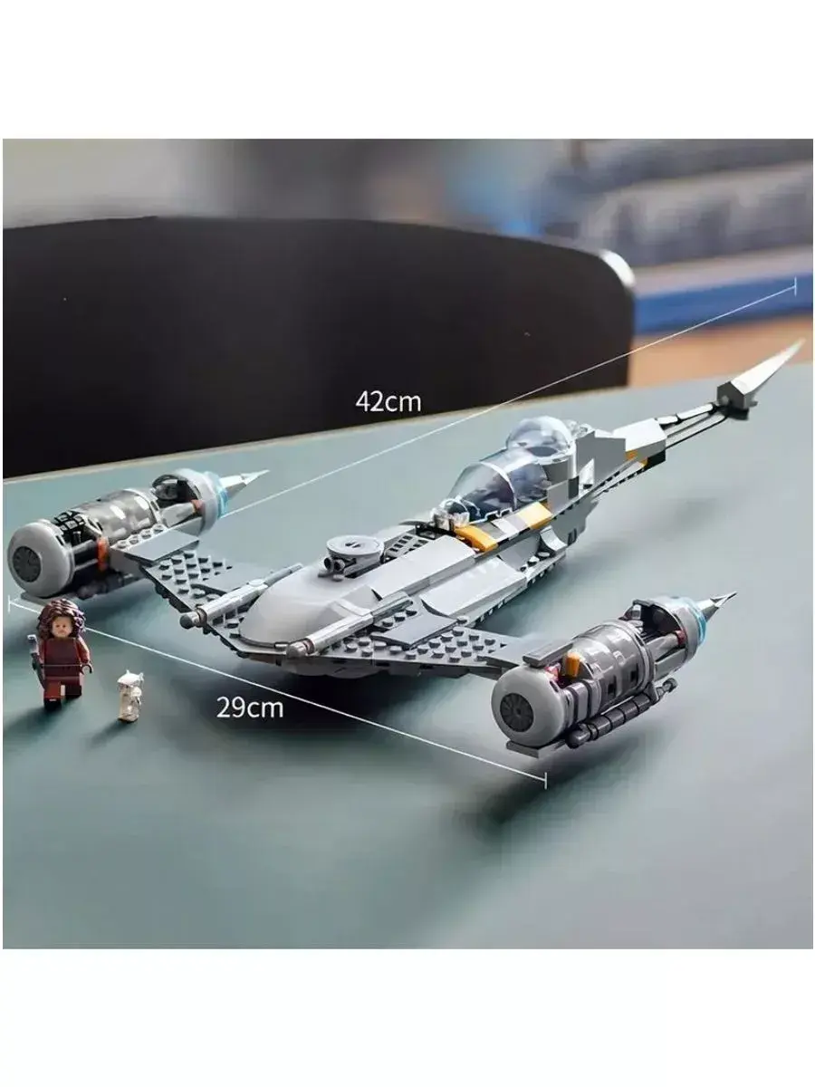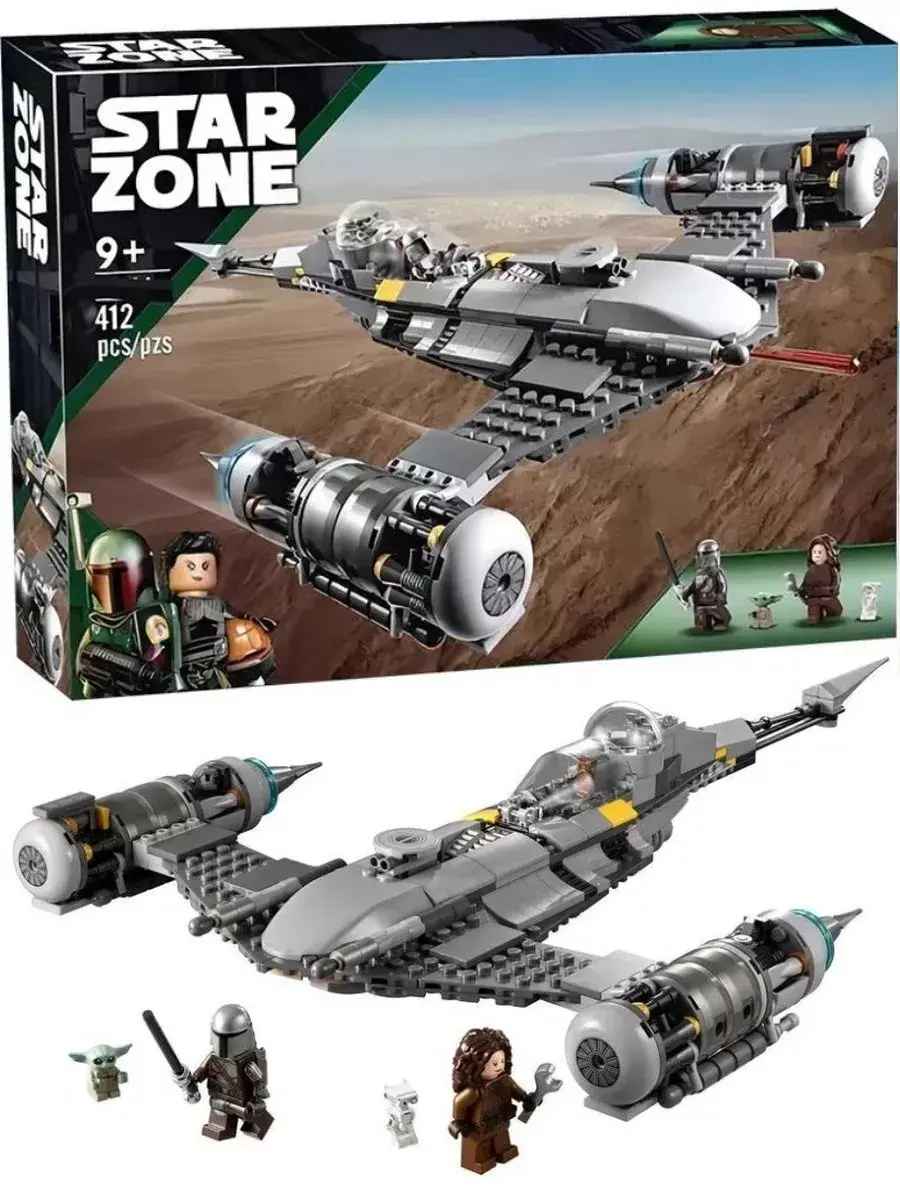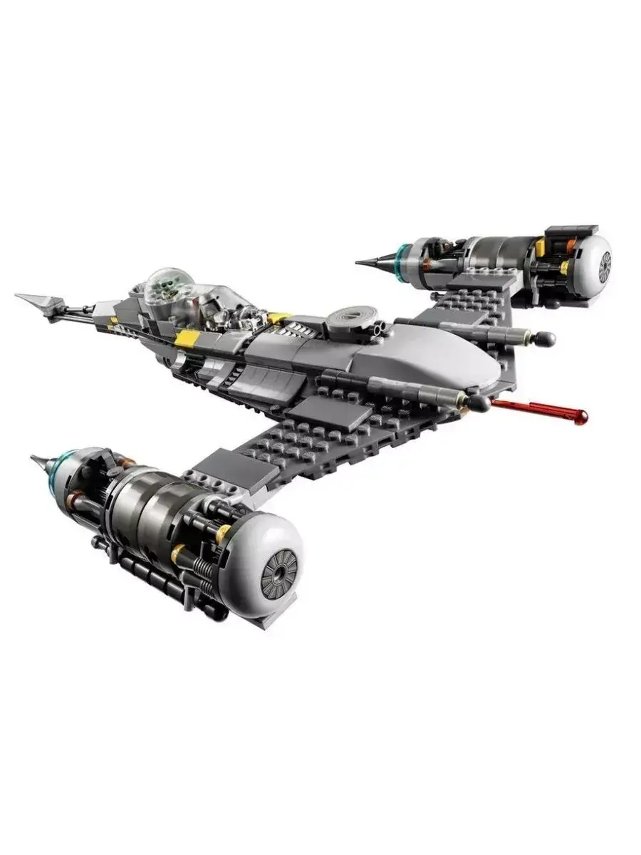 В комплекте также есть мини-фигурка Мандалорца с оружием, которая станет главным героем космических битв и приключений. Ребёнок сможет разыгрывать множество сюжетов — от обороны галактики до исследования новых планет и борьбы с врагами.