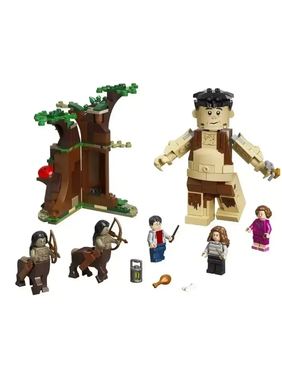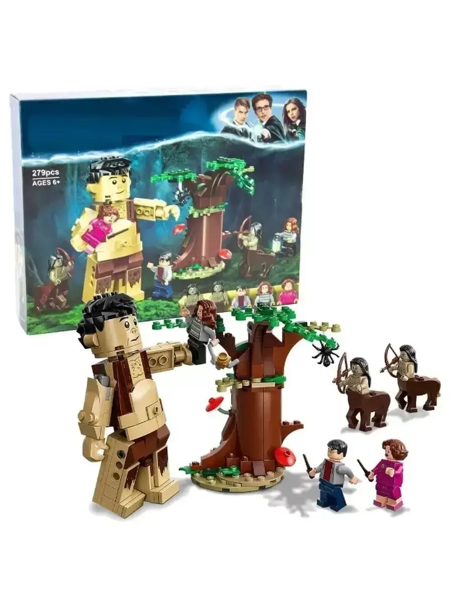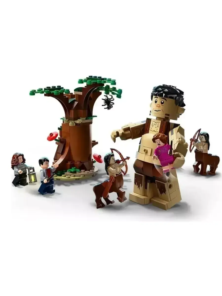 Конструктор из серии Harry Potter "Запретный лес: Грохх и Долорес Амбридж". состоит из 279 деталей. Переместиться в волшебный мир и встретить волшебных героев: великанов, кентавров, заколдованные деревья. Героями увлекательнейших приключений в этом лесу станут любимые персонажи в виде минифигурок Гарри Поттера, Гермионы и Долорес Амбридж. При помощи этого конструктора можно как воссоздавать киноэпизоды, так и придумывать что-то свое, создавая для героев различные испытания, которые нужно пройти. Интерактивность модели придает подвижная фигурка великана Грохха, а также открывающаяся дверца дерева-тайника, за которой скрываются волшебные предметы. Подобные элементы делают игровой процесс более привлекательным для ребенка, вызывая познавательный интерес. Аналог LEGO.